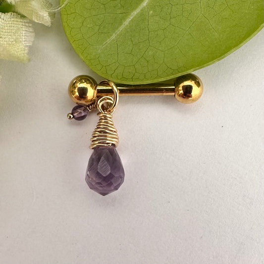 Grecian Amethyst Briolette Dangle Nipple Ring Barbell