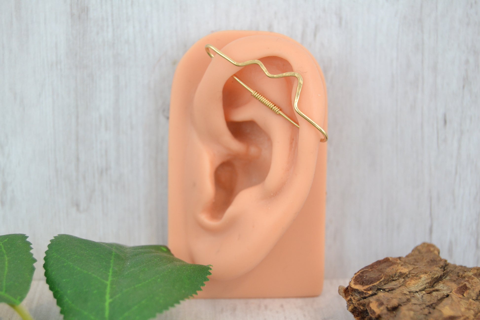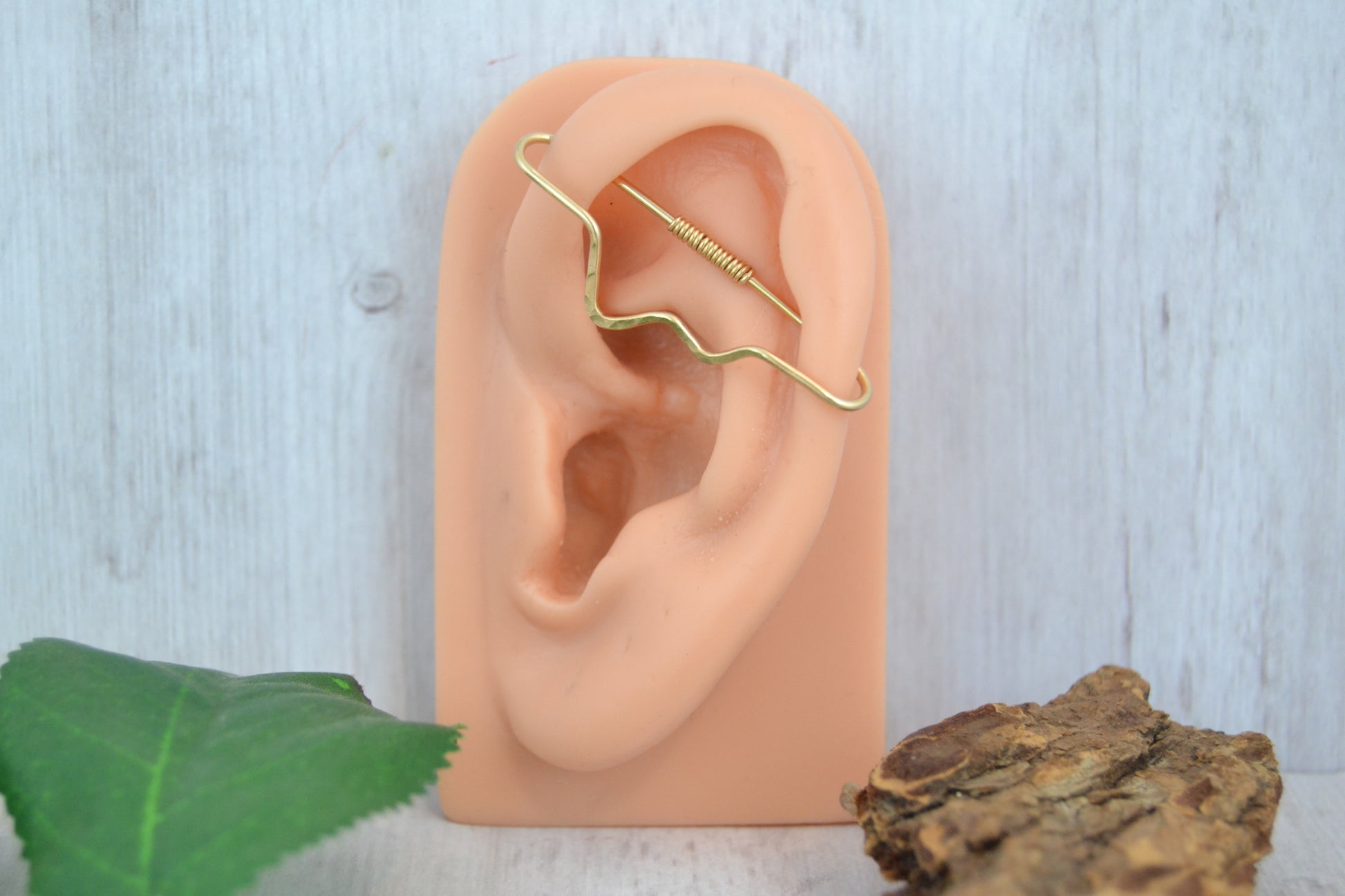 How to wear this: Slide coil to the side, twist sideways at the seam (not apart widely!), remove coil, insert the "hook" ends through each piercing hole one at a time, slide the coil back on, twist the seam sideways to close, move the coil over the seam.