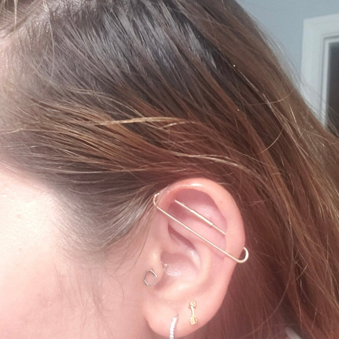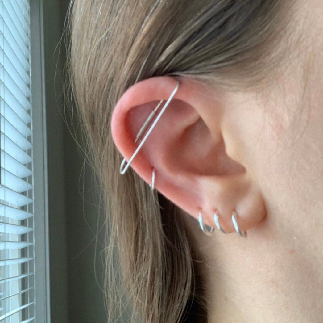 Hand made alternative seamless and bendable industrial bar for industrial piercings. This is designed for those who don't like the appearance of the balls on the ends of a barbell. This design doesn't get caught in other jewelry and can be worn with glasses, masks, and curly hair, beards etc with ease! 1 piece