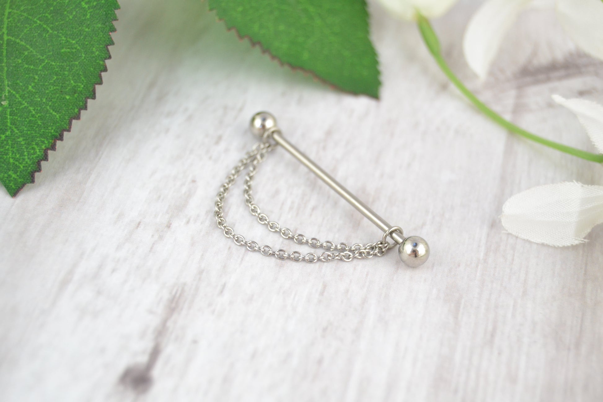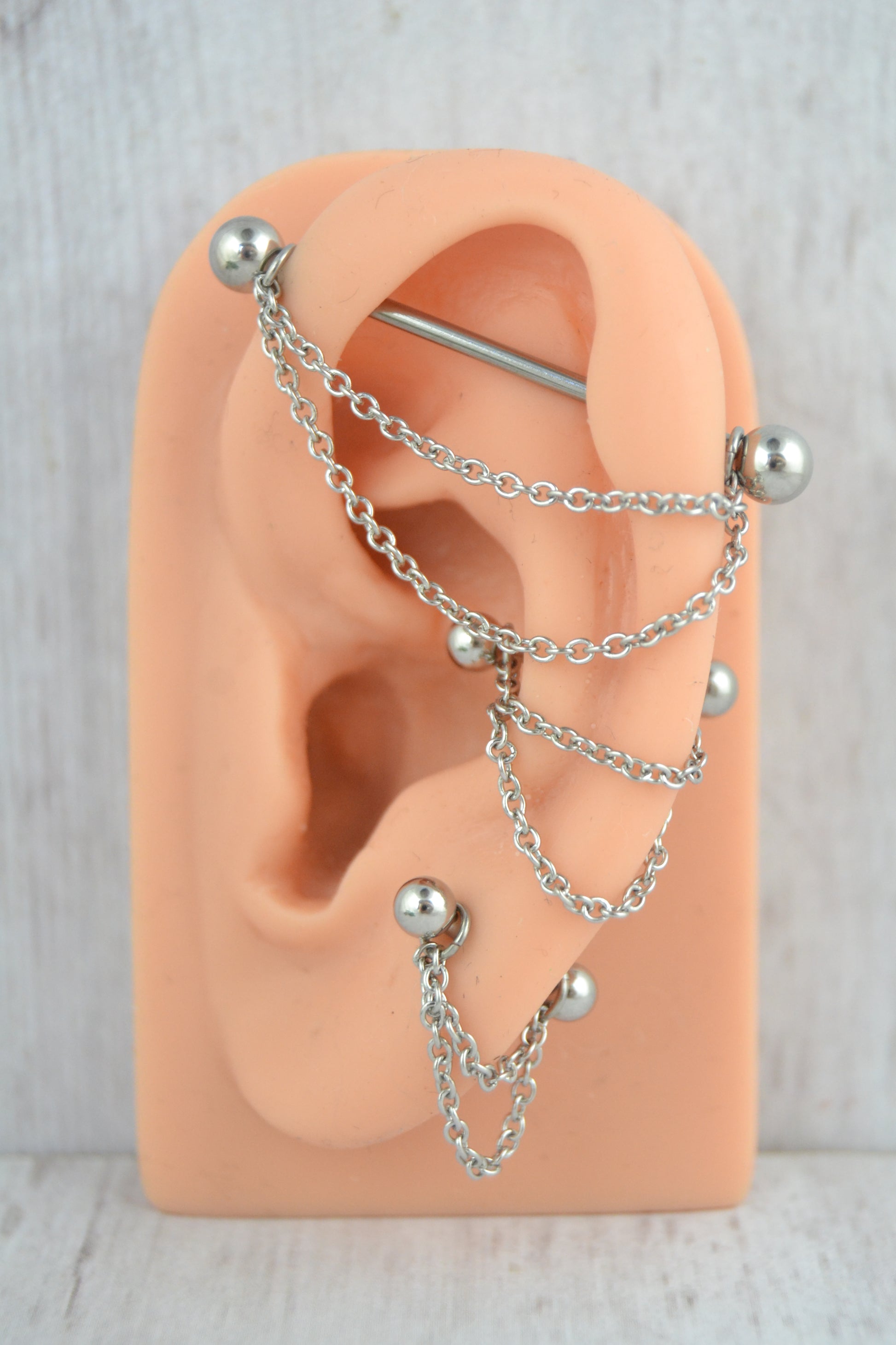 Double layered chain industrial barbell made out of 316L stainless steel. The barbells are externally threaded. You can choose from a variety of straight barbell lengths for a custom fit. These are a beautiful, unique and comfortable way to turn your everyday barbell into something more YOU! Wearable on the left or right ear and polished to a mirror finish. Listing is for 1 piece as shown (barbell + chain).