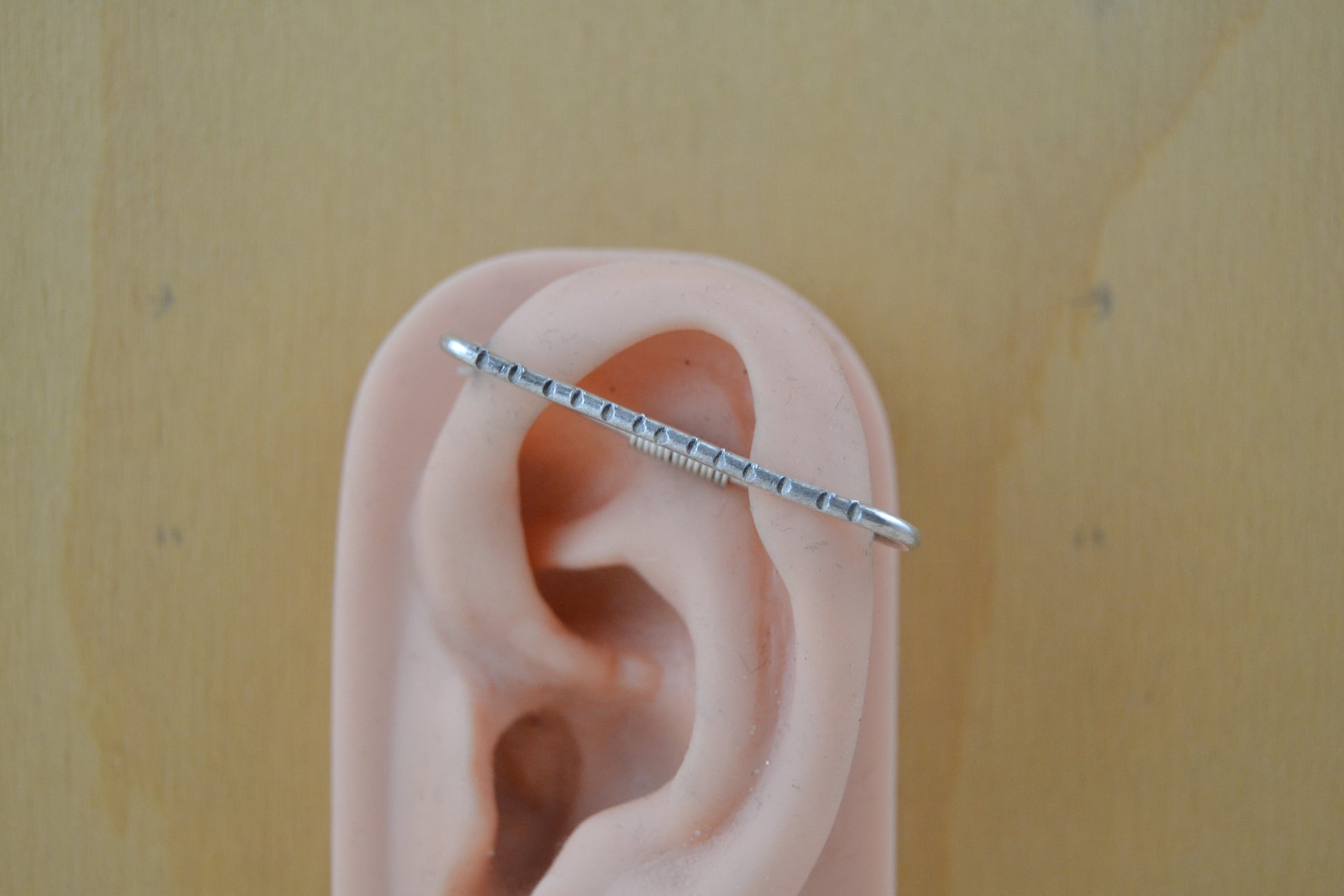 Hand made alternative seamless and bendable industrial bar for industrial piercings. This is designed for those who don't like the appearance of the balls on the ends of a barbell. This design doesn't get caught in other jewelry and can be worn with glasses, masks, and curly hair, beards etc with ease! 1 piece